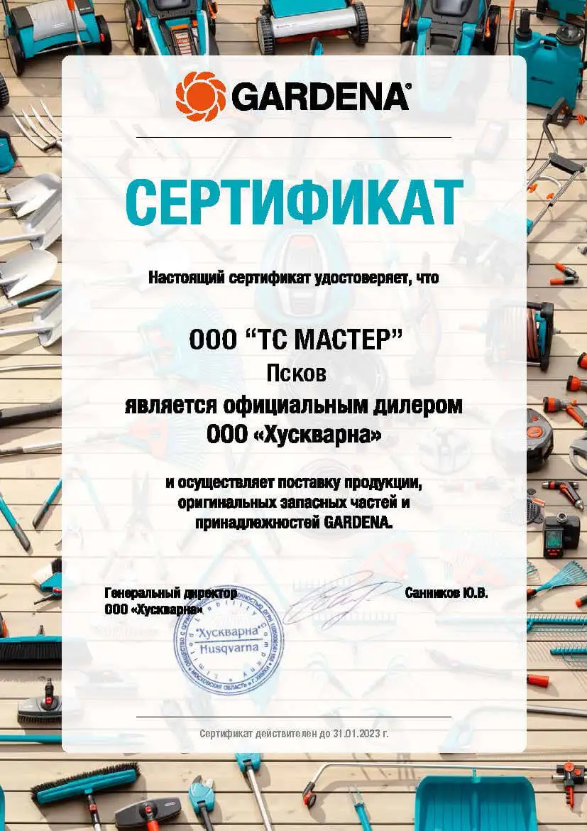 Гарантия 40 мес.на данный продукт при его регистрации на сайте в течение 3-х мес. с момента покупки. Подробные условия гарантии см. на сайте www.gardena.com/warranty. Эта гарантия от производителя не затрагивает гарантийных обязательств дилера/поставщика.